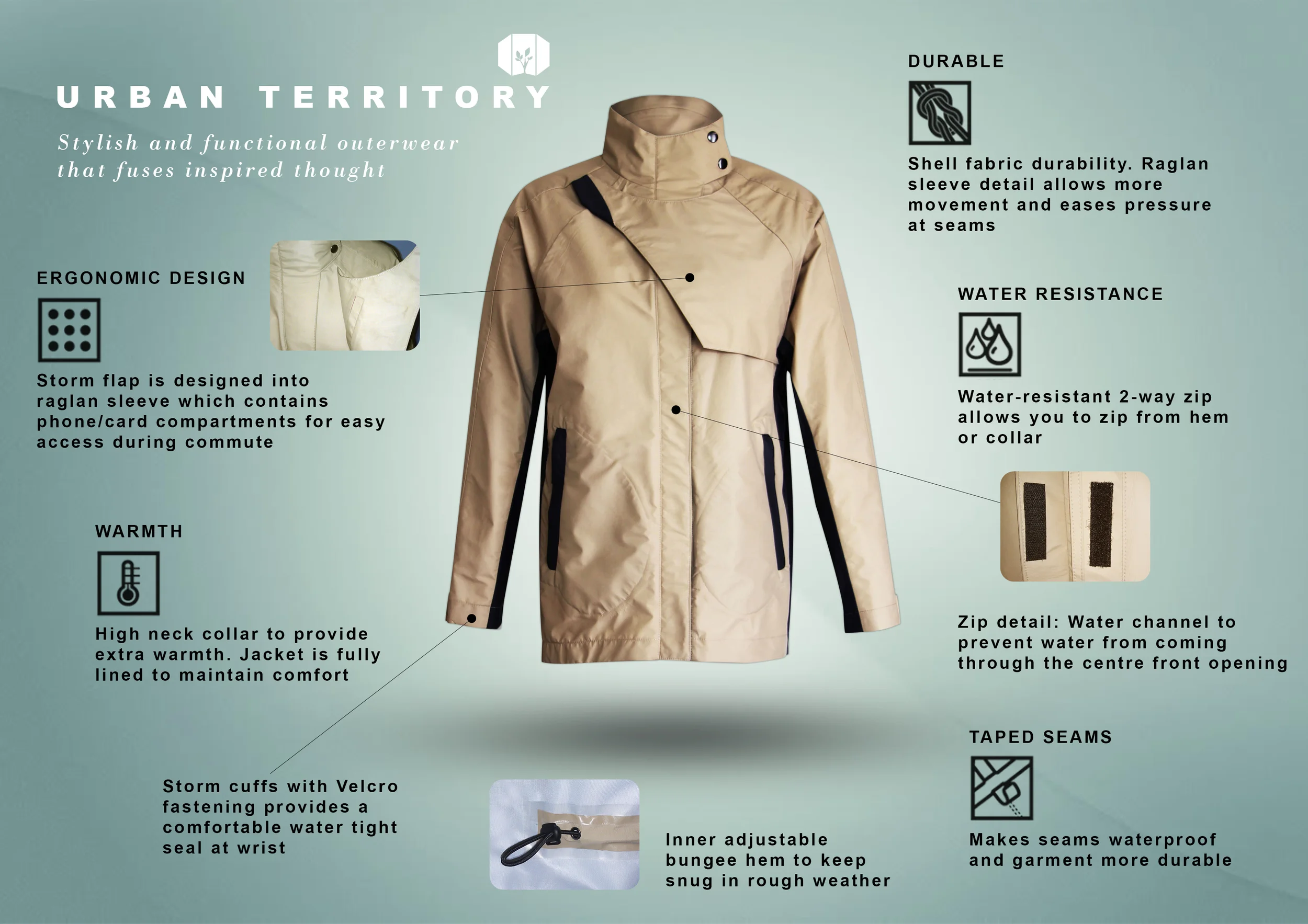 I designed an innovative and functional unisex jacket that would suit the harsh conditions of rural and urban environments.
